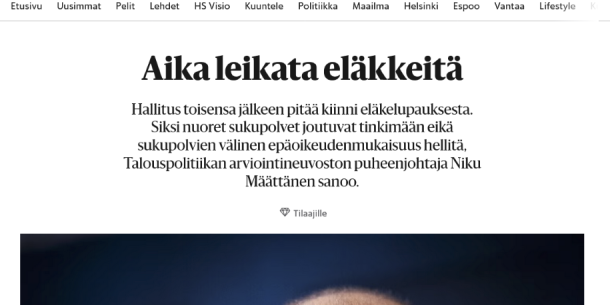 Talouspolitiikan arviointineuvoston puheenjohtaja, makrotalouden professori Niku Määttänen julistaa Helsingin Sanomien laajassa haastattelussa:...