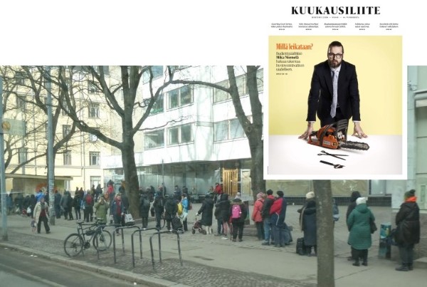 (Artikkeli 8.4.2026 Eespäin-lehteen 1/2026. Kuva Hurstin avun leipäjonosta/Toivo Koivisto ja Helsingin Sanomien kuukausiliitteen kansi.)